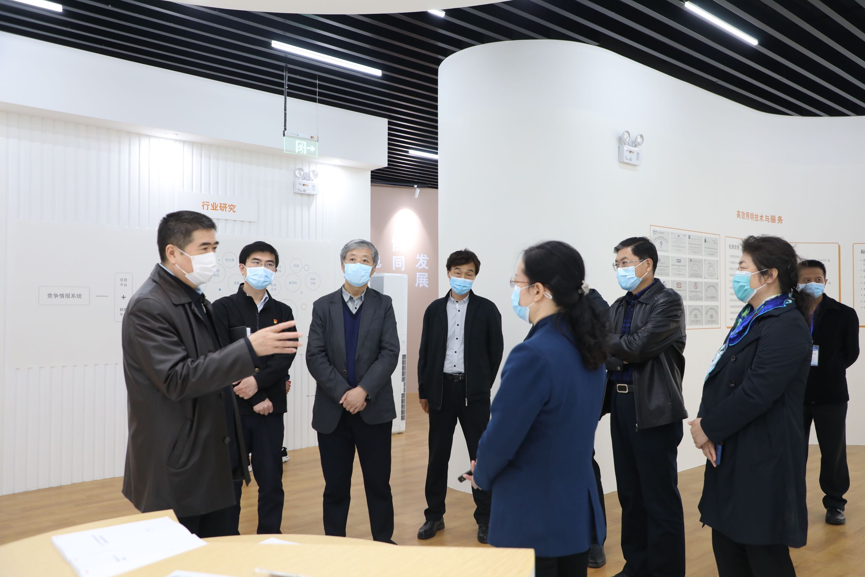 蘇總一行在測量體溫后進入園區,對園區進行實地調研。