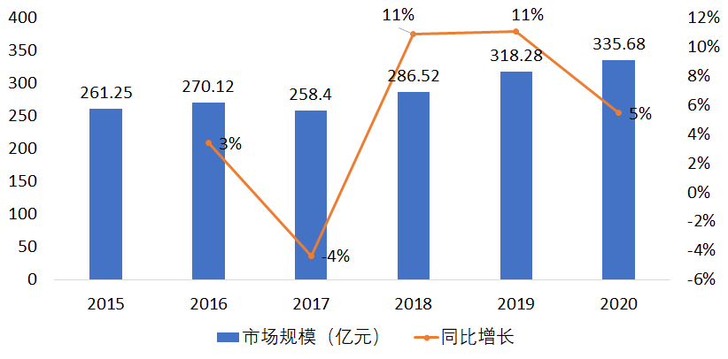 2020年,我國半導體制冷片市場規模達到335.68億元,受疫情影響同比增長僅達到5%。