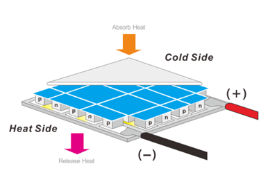 • 原理:電荷載體在導體中從低能等級向高能等級運動時需要從外界吸收熱量,達到制冷效果。