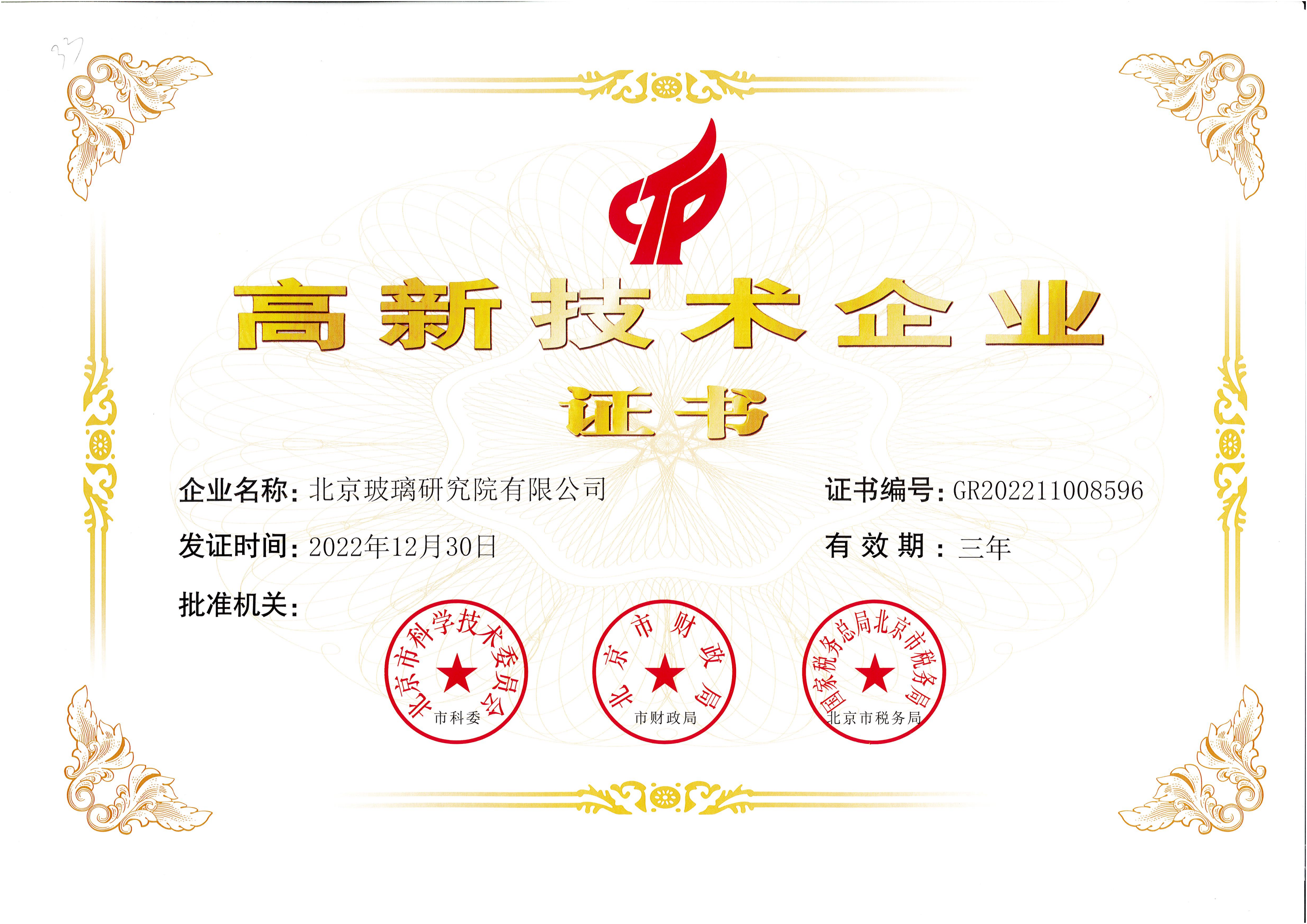 玻璃院榮獲國家級“高新技術企業”榮譽稱號