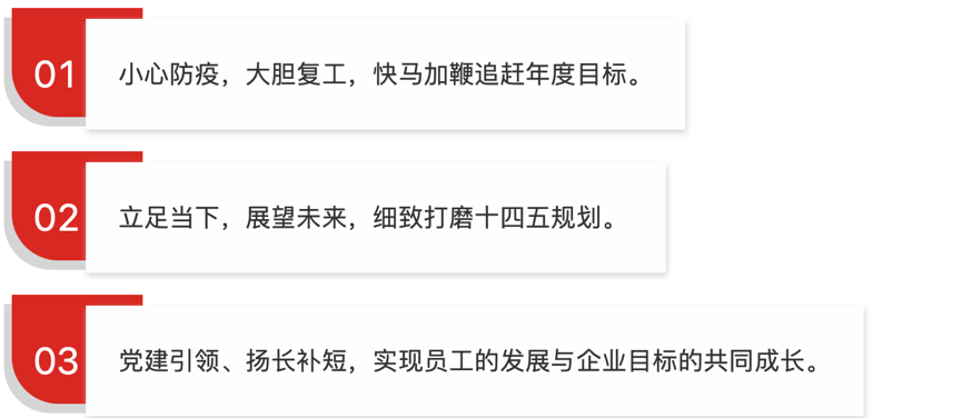 三、緊扣高質量發展,堅持穩中求進。十四五規劃是頂層設計,各單位、部門負責人要高度重視,統籌規劃,將各自的規劃自覺與一輕院定位及目標相統一。