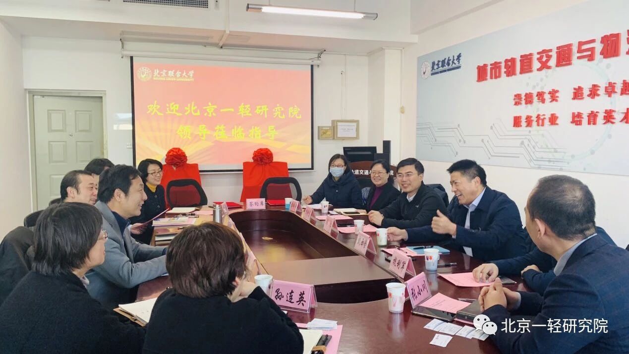 2019年1月16日,北京一輕研究院黨委書記韓松、院長甄西合、副院長方珍意、院長助理張小川、院長助理杭利軍等拜訪了北京聯合大學城市軌道交通與物流學院,受到院黨委書記叢森、院長程光等的熱情接待。
